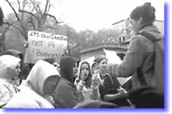 demonstrators strictly confining them to the sidewalk along Broadway,